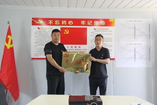 5月18日,亿丰公司党支部在和瑞园项目部举行“党员示范岗”挂牌授旗活动。公司党支部书记、经理王涛及其他班子成员参加活动。