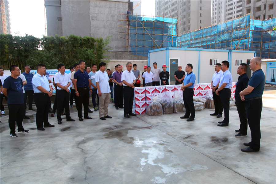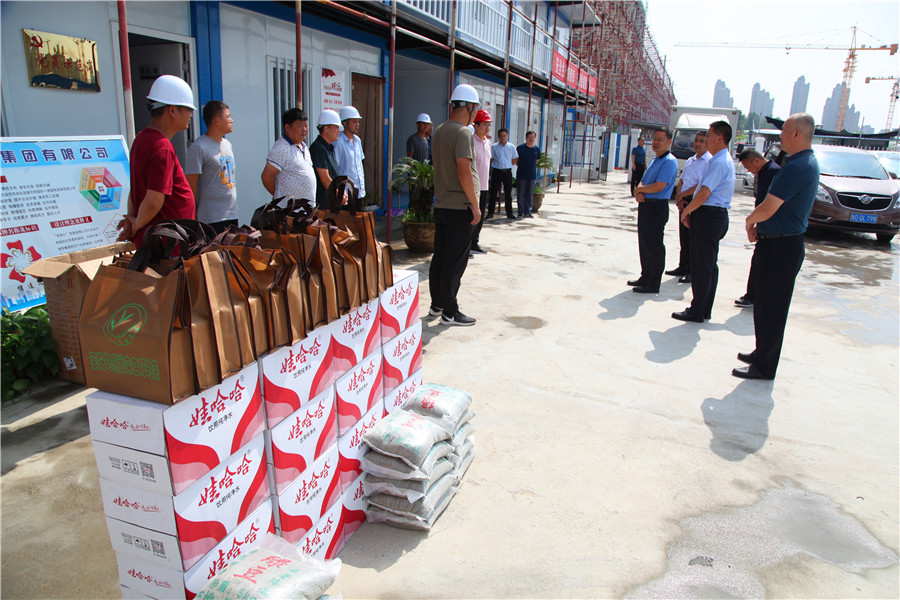 炎炎夏日,为表达对奋战在施工项目一线职工的关爱,7月23日,PA视讯集团党委书记、董事长徐俊,党委副书记、总经理杜泽坦带领集团部分领导为坚守在一线的职工送去茶叶、绿豆、矿泉水等防暑降温物资。