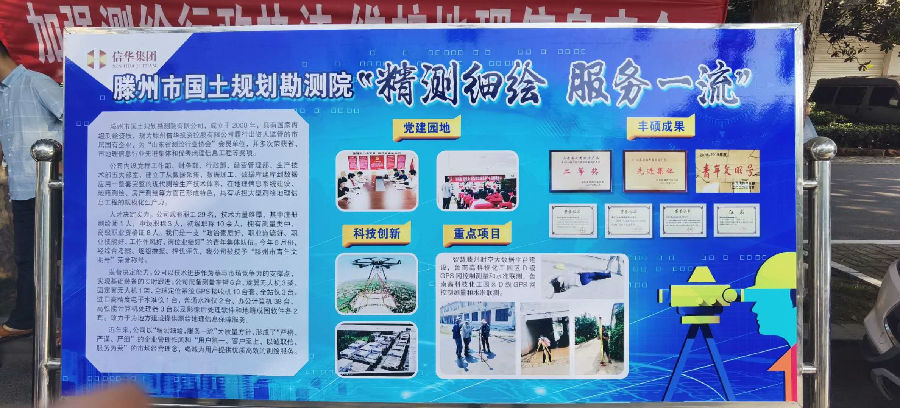 活动当天,勘测院公司董事长邵杰同志带领职工在学院路设置宣传点,悬挂宣传横幅,摆设宣传展板,发放测绘宣传材料,免费向市民赠送滕州市地图,现场提供测绘法律咨询,为广大市民答疑解惑。本次宣传活动,勘测院公司向广大市民生动的展示了测绘法律法规、测绘地图服务、测绘重点工程等丰富内容,展现出了公司的雄厚生产技术和装备力量。活动期间共计发放宣传手提袋800个,宣传彩页1000份,滕州市地图、滕州城区图各200张,解答群众咨询160余人次。