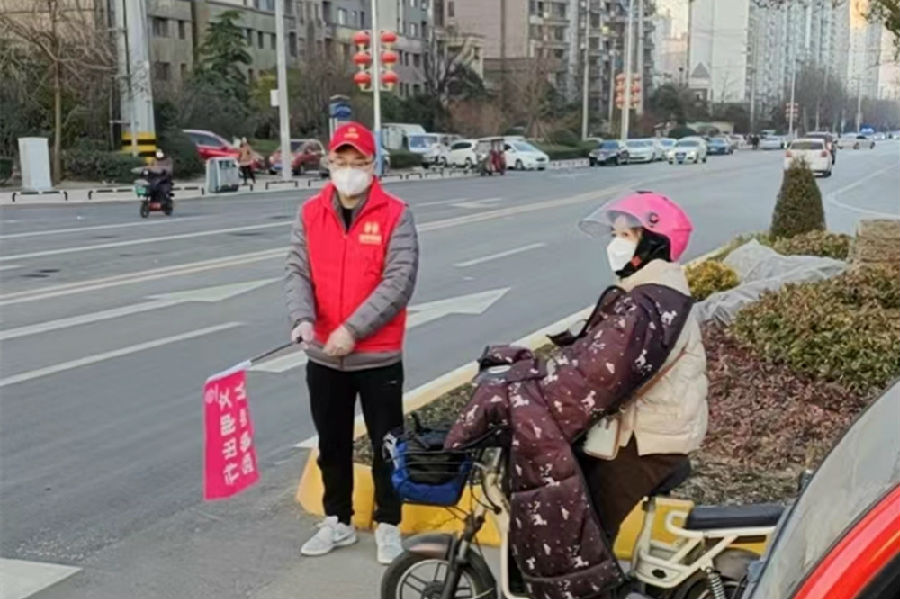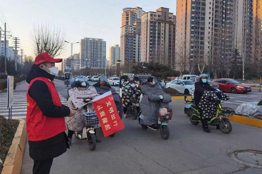 在龙泉路与府前路交汇处,PA视讯集团文明交通志愿者们身着红色志愿者马甲,手持交通引导旗,有序疏导交通。对路口闯红灯、越线等候红灯的电动车、自行车、行人进行交通安全劝导,呼吁广大群众摒弃交通陋习,提高文明礼让意识和自我防护意识,遵守交通规则,自觉维护自身和他人生命安全,养成文明出行的好习惯。