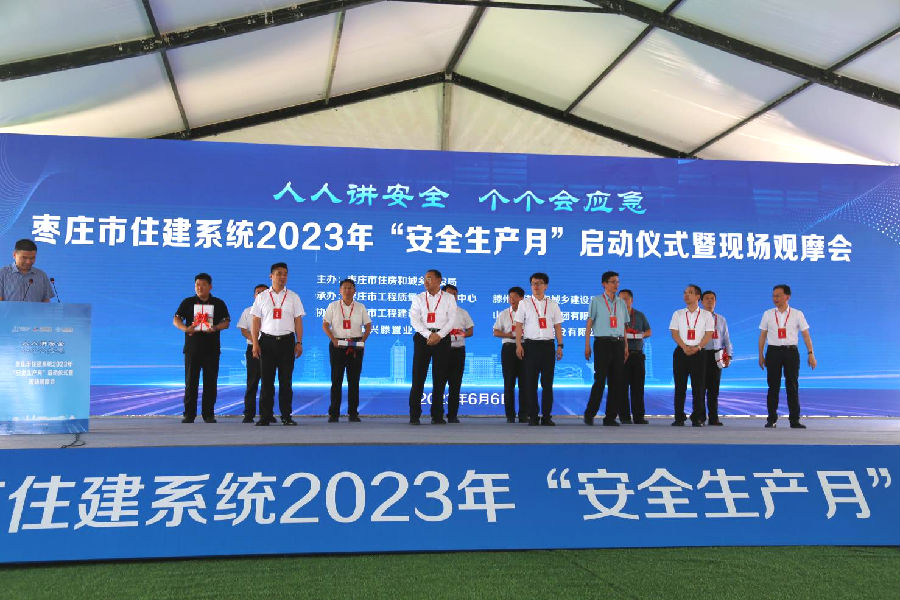 6月6日上午,枣庄市住建系统“安全生产月”活动启动仪式暨现场观摩活动在PA视讯集团中远公司所施工的柳岸风和项目现场召开。