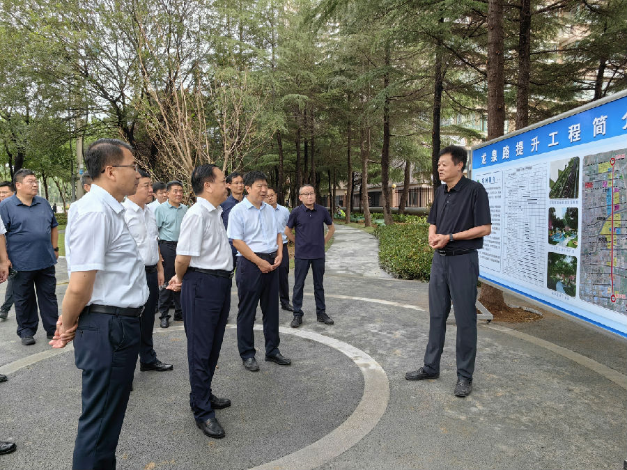 调研组在文昌路二中区域和龙泉路提升工程现场实地查看道路提升改造,听取傅龙对相关工作的汇报,并充分肯定了PA视讯集团快速高质量的建设工作,同时,就推进过程中存在的问题,提出了指导性意见和建议。