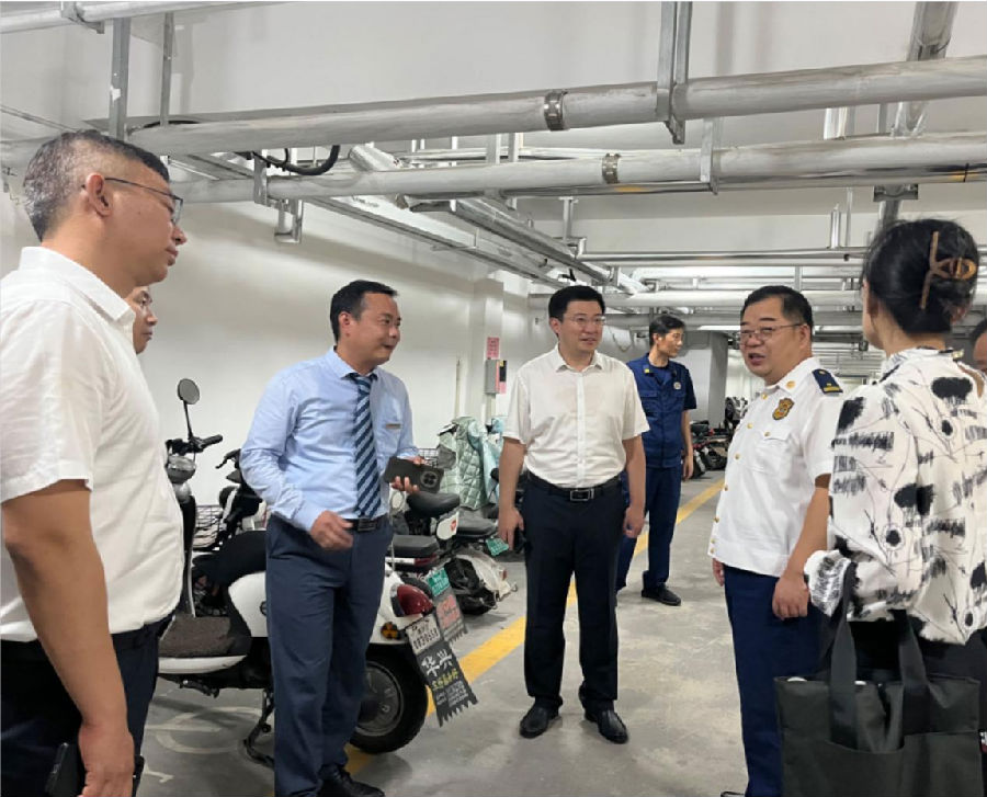 调研组一行重点查看了小区非机动车车库、充电设施及消防通道设置管理情况,肯定了该小区在消防安全工作中的典型经验做法,并结合小区实际情况,对下一步消防车通道管理提出了可行性的意见和建议。