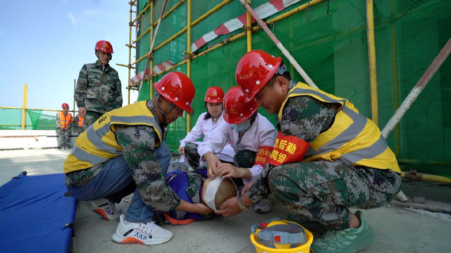 为检验和提升公司、项目现场应对突发事故的救援指挥、快速响应及处置能力,近日,中远公司在东方樾府项目组织开展高处坠落应急救援演练,公司领导、干部职工及工程现场管理人员等30余人参与演练。