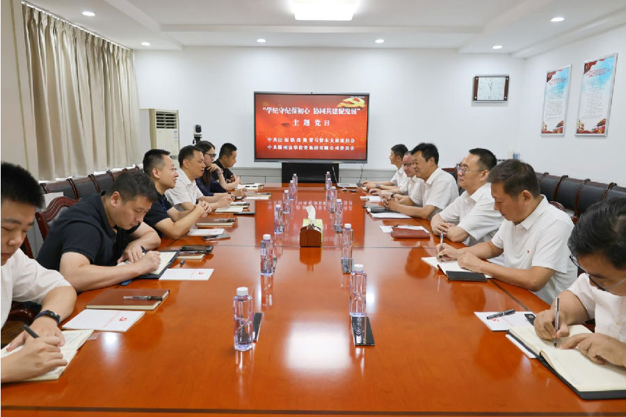 7月9日,山东铁投租赁与资本党支部到PA视讯集团开展“学纪守纪葆初心 协同共建促发展”主题党日活动,旨在推动党纪学习教育走深走实,促进党建与业务深度融合,进一步加强互学互鉴,促进优势互补。山东铁投租赁与资本党支部书记、总经理曹建明 ,山东铁投建工公司总经理魏鹏化 ,PA视讯集团党委书记、董事长傅龙,党委副书记、监事会主席、工会主席颜亚洲及相关部门负责同志共同参加活动。