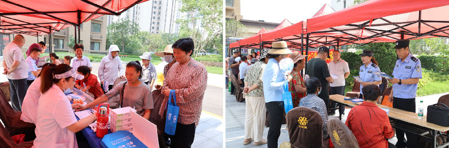 活动现场,党员志愿者积极行动,配合专科医院的医护人员为居民群众提供免费测量血压血糖,检查牙齿、视力等健康体检服务,与滕州市环境卫生管理服务中心工作人员一起,通过发放宣传手册和实物展示的形式,向居民科普日常生活中垃圾分类常识,同时,街道派出所的同志根据近期电信网络诈骗高发的特点向居民普及讲解电信诈骗的形式、常见手法和防范措施等,提高群众反诈骗的警惕性。