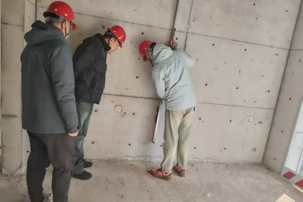 此次检查采取资料检查与工程实体检测相结合的方式,聚焦冬季施工质量隐患及关键管理环节,重点对混凝土强度、材料施工温度、墙面平整度、垂直度及开间尺寸进行了现场实测,对冬季施工方案编制审批、质量保护措施、实体保温养护、人员培训和技术交底情况进行了全面检查,并要求各项目技术负责人严格落实冬季施工质量控制措施,按照施工标准和设计要求进行冬季施工,确保冬季施工质量安全。